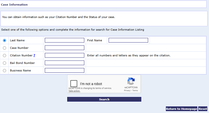 - Click on Case Inquiry / Traffic Database